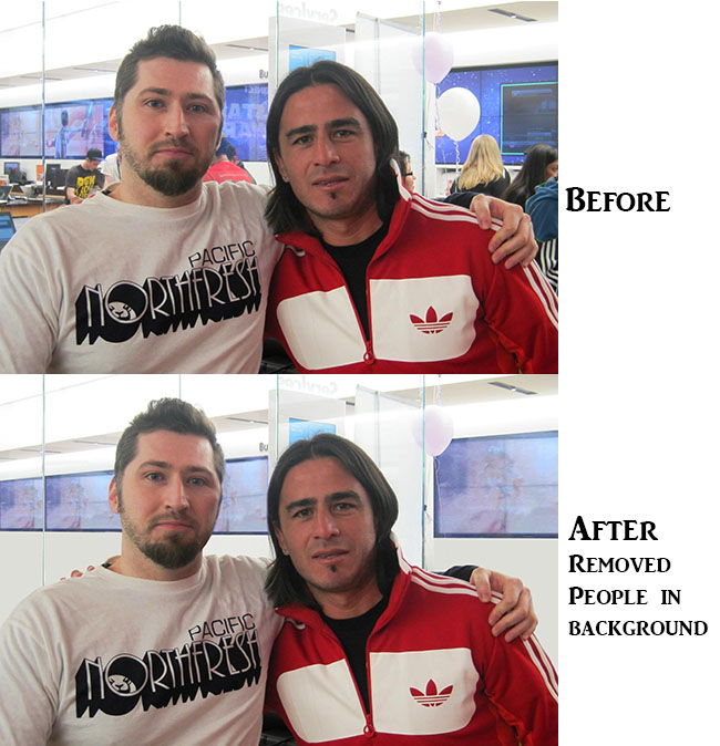 This is a photo I altered for a friend. He asked me to remove the people in the background and to make the screens in the back less busy.